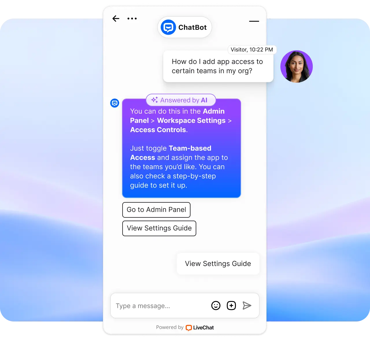 Complex issues are seamlessly handed to your team with full conversation context. Your customers never feel abandoned.